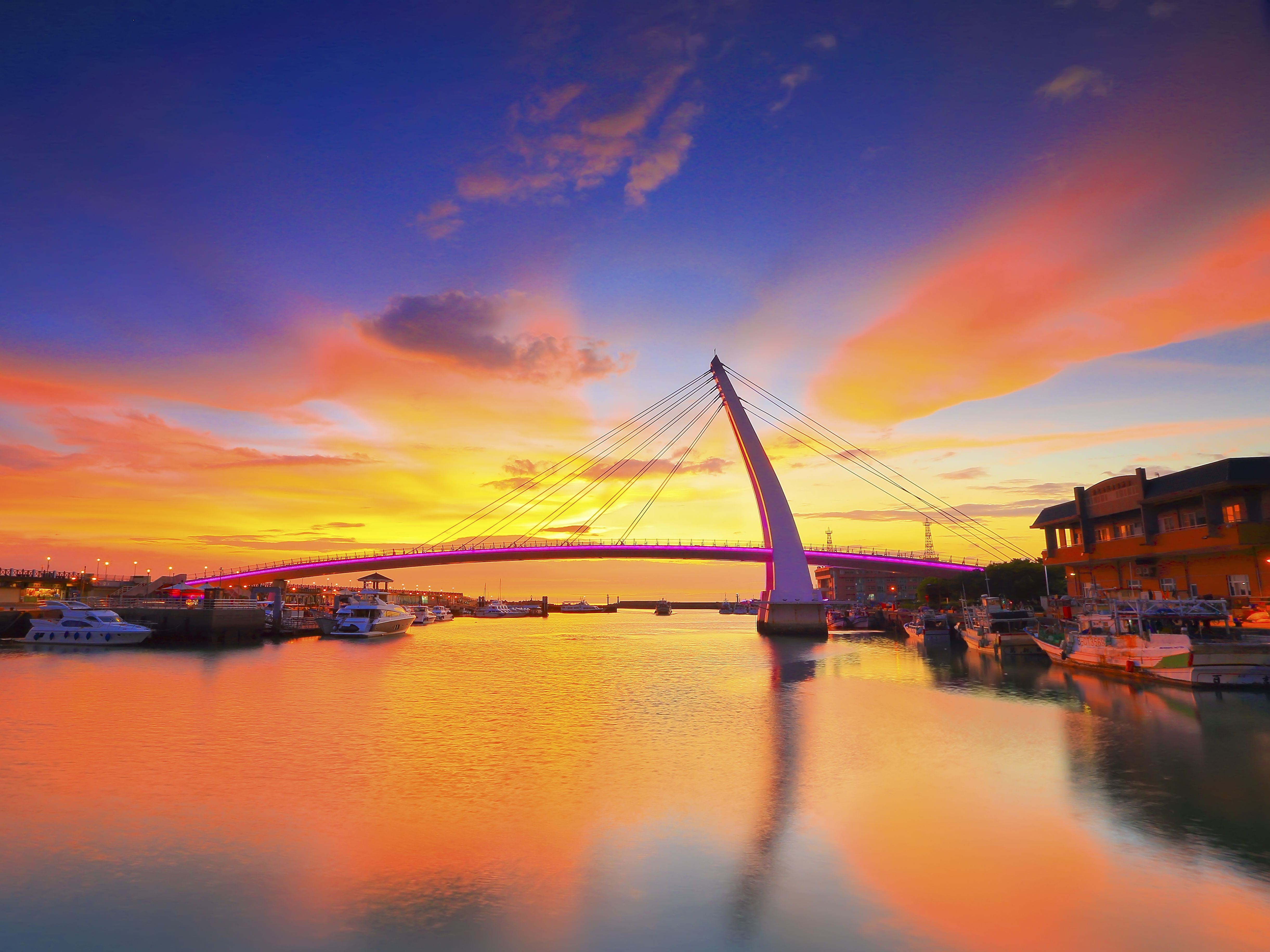Por la tarde, se puede disfrutar de la famosa puesta de sol de Tamsui (Danshui), tanto desde la barandilla de la estructura flotante de madera, como sentado en la plaza o en el puente elevado. Es una vista que ningún turista debería perderse.